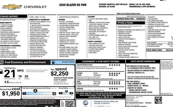 Comprehensive vehicle history reports for the 2020 CHEVROLET BLAZER. Understand the vehicle's past by reviewing potential accident history, damage reports, and critical vehicle title checks (including salvage, flood, or lemon brands.