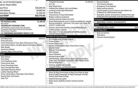 2023 CHEVROLET CAMARO VIN LOOKUP & VEHICLE HISTORY REPORTS