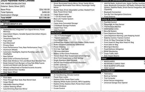 2020 HYUNDAI KONA Limited FWD DCT | KM8K33A54LU505902