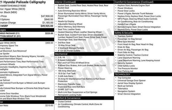 Comprehensive vehicle history reports for the 2021 HYUNDAI PALISADE. Understand the vehicle's past by reviewing potential accident history, damage reports, and critical vehicle title checks (including salvage, flood, or lemon brands.
