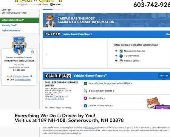 Comprehensive vehicle history reports for the 2021 JEEP GRAND CHEROKEE. Understand the vehicle's past by reviewing potential accident history, damage reports, and critical vehicle title checks (including salvage, flood, or lemon brands.