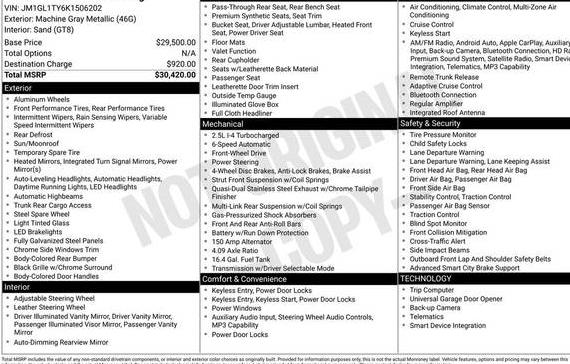 2019 MAZDA MAZDA6 | JM1GL1WY9K1505931