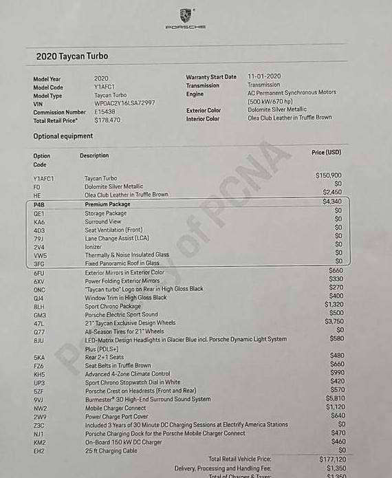 2020 PORSCHE TAYCAN 4S / 4S with Performance Pack | WP0AB2Y1XLSA52142