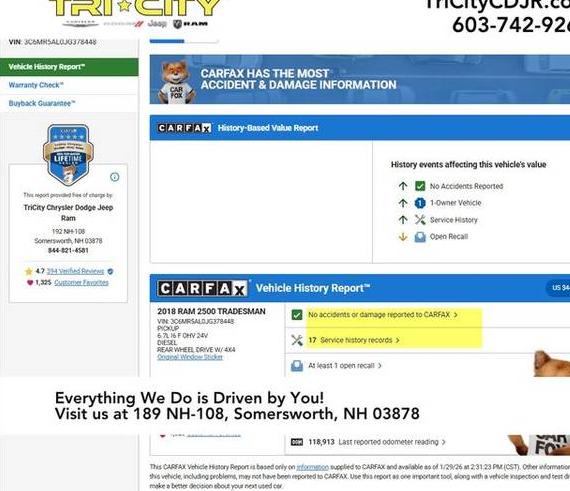 Comprehensive vehicle history reports for the 2018 RAM 2500. Understand the vehicle's past by reviewing potential accident history, damage reports, and critical vehicle title checks (including salvage, flood, or lemon brands.