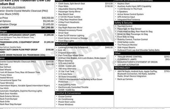 Comprehensive vehicle history reports for the 2020 RAM 2500. Understand the vehicle's past by reviewing potential accident history, damage reports, and critical vehicle title checks (including salvage, flood, or lemon brands.