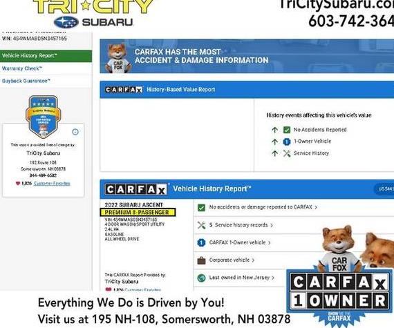 Comprehensive vehicle history reports for the 2022 SUBARU ASCENT. Understand the vehicle's past by reviewing potential accident history, damage reports, and critical vehicle title checks (including salvage, flood, or lemon brands.