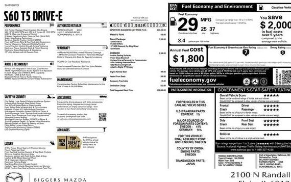 2015 VOLVO S60 Premier+ (non R design) | YV126MFC7F2305728